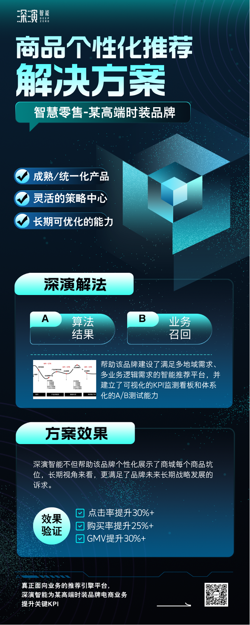 最终,开心8智能不但帮助该品牌个性化展示了商城每个商品坑位,长期视角来看,更满足了品牌未来长期战略发展的诉求。该解决方案实施后,经过一段时间的效果验证和方案优化,该品牌的点击率提升30%+、购买率提升25%+、GMV提升30%+,项目的效果还在持续优化中。